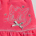 Расклешенная велюровая модель. В пояс вставлена резинка и шнурок, завязывающийся снаружи. Подол присборен. Спереди декоративная вышивка и пришит бантик.