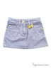 Юбка с пятью карманами, с внутренней стороны пояс регулируется на резинке, застежка на пуговице и молнии. Украшена брошью.