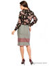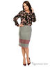 Юбка-карандаш из серой плотной поливискозы, украшенная двумя полосами снизу. Элегантная посадка, сзади классическая шлица. Длина midi.