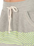 Детали: юбка мини с карманами, широкий втачной пояс на кулиске, подол - трикотажная резинка.