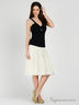 Расклешенная юбка из плотной неэластичной ткани с хлопчатобумажной подкладкой. Застежка на молнию сбоку, декорирована складками. Отличный вариант для прогулок по городу.