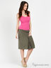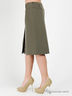 Прямая юбка из тонкой костюмной ткани на шелковистой подкладке. Отрезной пояс с небольшими шлевками, застежка на молнию сбоку, спереди и сзади встречные складки, спереди шлица на пуговицах. Отличный вариант для городских жительниц.