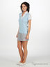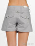 Юбка-шорты с запахом. Ткань - поплин. Отрезной пояс со шлевками. Застежка на молнию и кнопки. Два передних и два задних кармана. Запах фиксируется ремешками на кнопках. Декоративные складки на передней части и хлястик на задней части изделия.