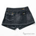 Юбка-шорты из джинсовой ткани черного цвета, окрас с искусственными потертостями. Пояс шорт на резинке, передняя планка застегивается на пуговицы. Накладной карман с клапаном.