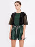 Юбка-шорты средней посадки на эластичном поясе. Модель дополнена декоративными элементами.