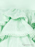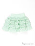 Детали: отрезной пояс-резинка, многоярусные воланы с кружевной тесьмой, подол декорирован стразами.