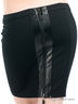 Юбка прямого кроя из плотной ткани. Спереди застегивается на молнию, оформленную вставками из кожзаменителя.
