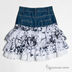 Оригинальная юбочка с трехслойными валанами. Выполнена в комбинированном стиле: верх юбки - из джинсовой ткани, низ юбки - из тонкого хлопка. Имеет два кармана спереди и два сзади.