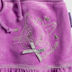 Расклешенная велюровая модель. В пояс вставлена резинка и шнурок, завязывающийся снаружи. Подол присборен. Спереди декоративная вышивка и пришит бантик.
