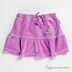 Расклешенная велюровая модель. В пояс вставлена резинка и шнурок, завязывающийся снаружи. Подол присборен. Спереди декоративная вышивка и пришит бантик.