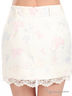 Детали: отрезной пояс со шлевками, в которые продет пояс; застегивается на скрытую молнию сзади; два втачных кармана; низ изделия дополнен кружевной вставкой; оригинальный принт