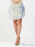 Воздушная короткая юбка расклешенного кроя. Отрезной атласный пояс. Сбоку застежка на молнию. Оригинальный узор.