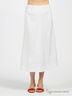 Простая льняная юбка отлично подойдет для жаркой погоды. На подкладе. Отрезной пояс-кокетка, сзади посажен на резинку. Клешеный силуэт. Застежка - потайная молния, проходит по боковому шву.