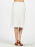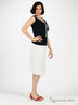 Простая льняная юбка отлично подойдет для жаркой погоды. На подкладе. Отрезной пояс-кокетка со шлевками для ремня. Застегивается на молнию и два крючка. Два втачных кармана спереди. Два накладных кармана ассиметричной формы сзади. Один кармана декорирован вышивкой и стразами.