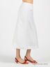 Простая льняная юбка отлично подойдет для жаркой погоды. На подкладе. Отрезной пояс-кокетка, сзади посажен на резинку. Клешеный силуэт. Застежка - потайная молния, проходит по боковому шву.