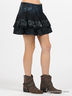 В нарядной юбке расклешенного кроя Вы будете чувствовать себя уверенно на любой вечеринке. Застегивается на молнию и декоративные хлястики с застежками. Втачной пояс. Юбка декорирована простроченными складками и оригинальной вышивкой. Тонкая хлопковая подкладка дополнена рюшей.