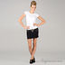 Стильная мини юбка из темной джинсы с добавлением эластичных нитей. Швы декорированы светлой отсрочкой.