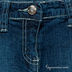 Слегка расклешенная модель застегивается на пуговицу и молнию. К поясу пришиты шлевки. Три передних кармана, два задних кармана. Контрастная прострочка, декоративная вышивка на задних карманах.