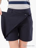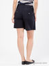 Юбка-шорты из поплина стретч, 2 клапана на вертикальном шве сбоку справа, люверс + завязка, удерживающая деталь с запахом, кокетка + 2 накладных кармана с пуговицей сзади. Застежка на молнию сбоку.