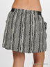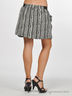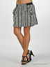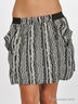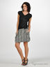 Легкая расклешенная юбка. Сверху изделие посажено на широкую резинку. Спереди два металлические молнии. Два втачных кармана. Есть подкладка.