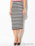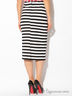 Замечательная юбка миди имеет прямой крой. Модель оформлена рисунком в полоску.