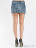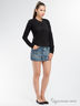 Джинсовая юбка-укороченная, на молнии с декоративными пуговицами, спереди два кармана..По центру спереди и сзади декоративный, фигурный шов. Сзади два накладных кармана.