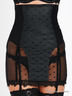 Оригинальная нижняя юбка с утягивающим эффектом. Выполнена из тонкой сетчатой ткани. Спереди вставка шелковистого материала. Застегивается сзади на три крючка, дополнена пажами для чулок.
