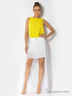 Юбка оригинального, ассиметричного кроя. Покрой " мини" спереди и удлиненный сзади, что, несомненно, придает изюминку и загадочность образу. Завышенная посадка в талии. Пояс украшен декоративным элементом с логотипом бренда. Отличный вариант на каждый день.
