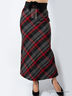 Детали: классическая длинная юбка с застежкой на молнию, спереди изделие украшено декоративным элементом