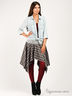 Стильная юбка расклешенного силуэта. Широкий отрезной пояс со шлевками для ремня. Изделие с ассиметричным кроем низа. Будьте в центре внимания!