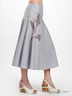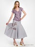 Расклешенная модель на широкой кокетке. Скрытая застежка на молнию в левом боковом шве. Крупная аппликация спереди.