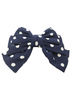 Какая девочка не любила, когда мама заплетала ей в в волосы ленты, завязывая их в огромные нарядные банты? Много лет спустя нам всем по-прежнему хочется порой окунуться в далекое детство и побаловать себя игривыми аксессуарами, которые напомнили бы о тех беззаботных деньках! Заколка «БАНТ В ГОРОШЕК» - как раз такое украшение. Она представляет собой классический зажим-автомат, декорированный крупным пышным текстильным бантом синего цвета с принтом в мелкий белый горох.