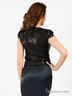 Стильный жакет приталенного силуэта. Выполнен из натуральной глянцевой кожи. Хб подкладка. Отложной воротник. Короткие рукава. Застежка на пуговицу.