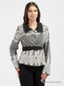 Превосходный жакет, выполненный из контрастного материала. Модель с длинными рукавами, отложным воротником, снабжена застежкой на пуговицы. Дополнено изделие поясом на талии. Отличный вариант для женского гардероба.