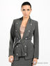 Превосходный женский жакет, с отложным воротником переходящим в планку и длинными рукавами. Застежка на элегантный пояс. Изделие декорировано пуговицами.