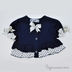 Жакет прямого силуэта застегивается на кнопки. Изделие украшено оборками, кружевом и бантиками.