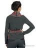 Прежде всего, эта модель привлекает сочетанием разных фактур полотна - комфортный трикотаж рибана с большим содержанием эластана и костюмная ткань в традиционную клетку шотландка, скроенная по косой. Воротник «шалька» с открытыми срезами делает жакет очень женственным. Широкий пояс с крупной пряжкой эффектно подчеркивает линию талии. Демократичность этого фасона позволяет носить его как со строгими брюками, так и с любимыми джинсами.