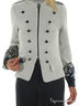 Жакет прилегающего силуэта. Воротник-стойка. Застежка на металлическую двухзамковую молнию. Обшлаг рукава также с металлической молнией. Жакет украшен двумя рядами пуговиц. Внутренний обшлаг, нижний погон, нижние клапаны карманов и подборт выполнены из контрастной ткани. Баска по низу жакета. Швы декорированы отделочными строчками. Идеальная пара и для брюк, и для любимых джинсов.