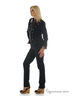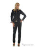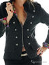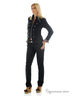 Жакет прилегающего силуэта. Воротник-стойка. Застежка на металлическую двухзамковую молнию. Обшлаг рукава также с металлической молнией. Жакет украшен двумя рядами пуговиц. Внутренний обшлаг, нижний погон, нижние клапаны карманов и подборт выполнены из контрастной ткани. Баска по низу жакета. Швы декорированы отделочными строчками. Идеальная пара и для брюк, и для любимых джинсов.