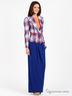 Детали: отложной воротник, застежка на две пуговицы, длинный прямой рукав присборен на плечах и дополнен декоративными заплатками на локтях, два кармана, трикотажный пояс завязывается на спине в узел