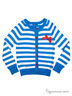 Вязаный жакет в полосочку для девочки из вискозы. Содержание нейлона обеспечивает удачную посадку на фигуре. Мягкий и приятный на ощупь жакет не сковывает движения ребенка, обеспечивая ему наибольший комфорт. Полочка декорирована бантиком из алой ленты в белый горошек.