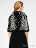 Детали: отложной ворот; укороченный рукав; застегивается на пуговицы; низ изделия сзади на резинке; окантовка краев атласной тканью