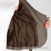 Романтичный пиджак глянцево-коричневого цвета, с воланом по линии ворота на одной пуговице с люверсами на карманах и рукавах.