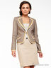 Жакет классического кроя. Выполнен из льняной ткани, цвета мокко. Лацканы и карманы окантованы цветной лентой. Застежка на декоративный крючок.