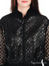 Детали: застежка на молнию, высокие манжеты в рубчик, полочка и рукава декорированы сетчатой тканью и перфорированной тканью