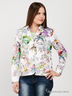 Потрясающий жакет из плотного, мягкого полухлопкового сатина. Отложной ворот с лацканами. Застежка на пуговицы. Длинные рукава с декоративными разрезами на манжетах. На полочках два накладных кармана с застежкой на пуговицы. Прекрасный вариант для создания романтического образа!