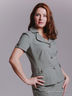 Стильный жакет из льна с хлопком в едва заметную тонкую полоску. Модель без подкладки, полуприлегающего силуэта. На манжетах и планках кармана отделочные паты. Оригинальный воротник.