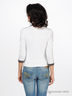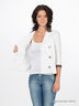 Жакет из спортивного трикотажа, двубортный. Рукав 3/4 присборен у основания. Приталенный силуэт. Декоративная отделка воротника и рукавов контрастного темно-серого цвета. Застегивается на три пуговицы.