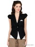 Детали: отложной ворот с лацканами, застежка на пуговицу, короткий рукав присборен по плечевому шву, имитация карманов