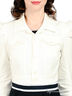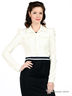 Детали: отложной ворот-стойка, застежка на пуговицы, два нагрудных кармана, манжеты на пуговице, плечики присборены